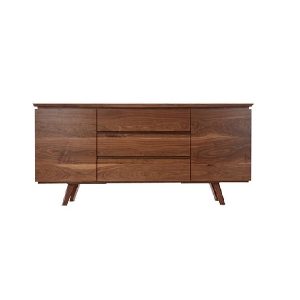 Sideboard made of veneered board with stain finish. Number of interior shelves: 2 Number of drawers: 3 Size: 215 W x 45 D x 70 H (All dimensions are in cm) Finish available: -Glossy -Matt -