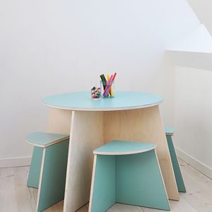 Product made from plywood finished in Pu paint. SIZE :- TABLE– 70 W x 70 D x 90 H (All dimensions are in cm) STOOL– 35 W x 35 D x 50 H (All dimensions are in cm) Finish available:… -